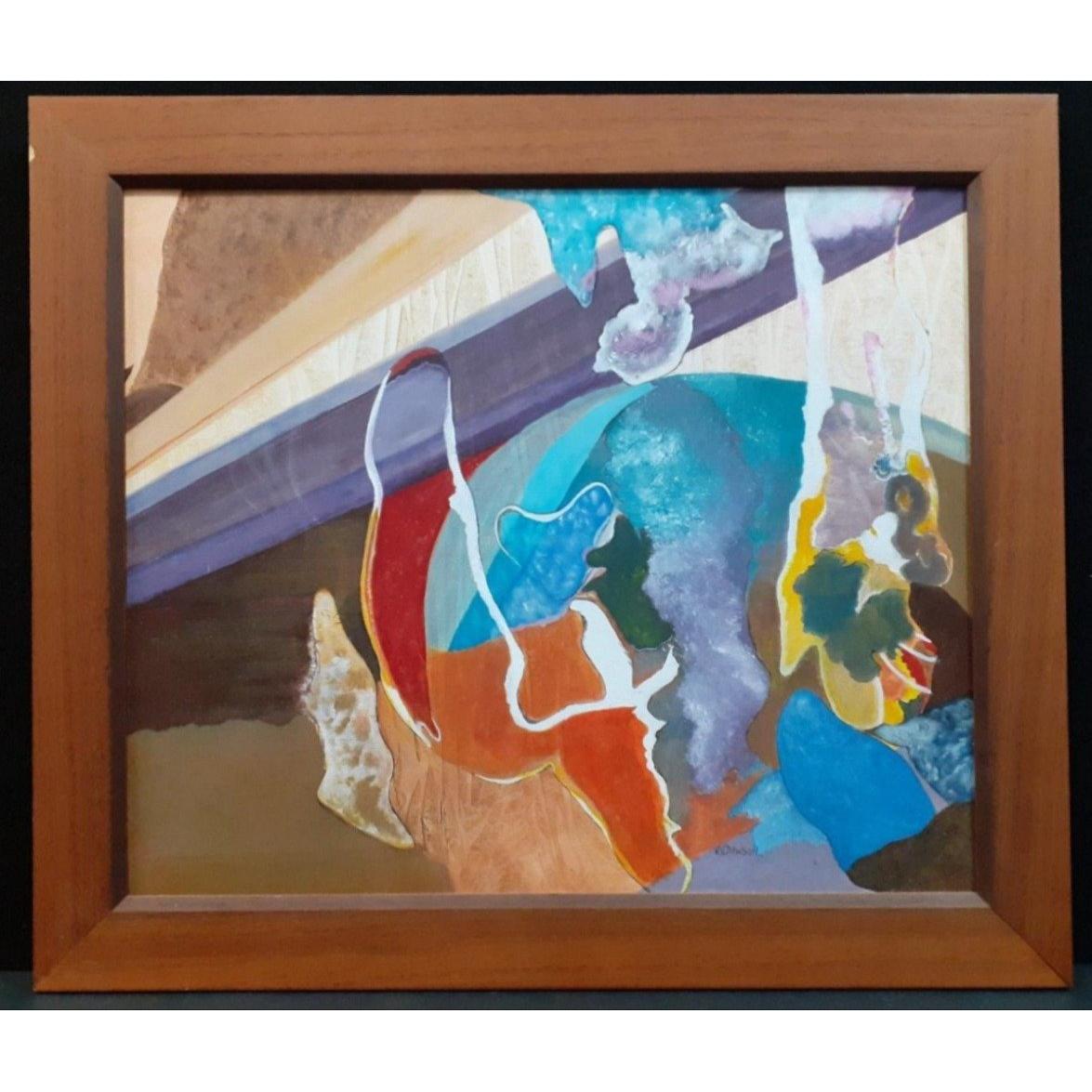 An abstract print on canvas H Dawson artist. 78cm x 67cm approx. Attractive colourful piece.
