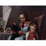 Oil on Board signed DG and dated 1879 depicting Woman and Child . Heavy ornate gilt Gesso frame. Size 66cm x 53cm approx.
