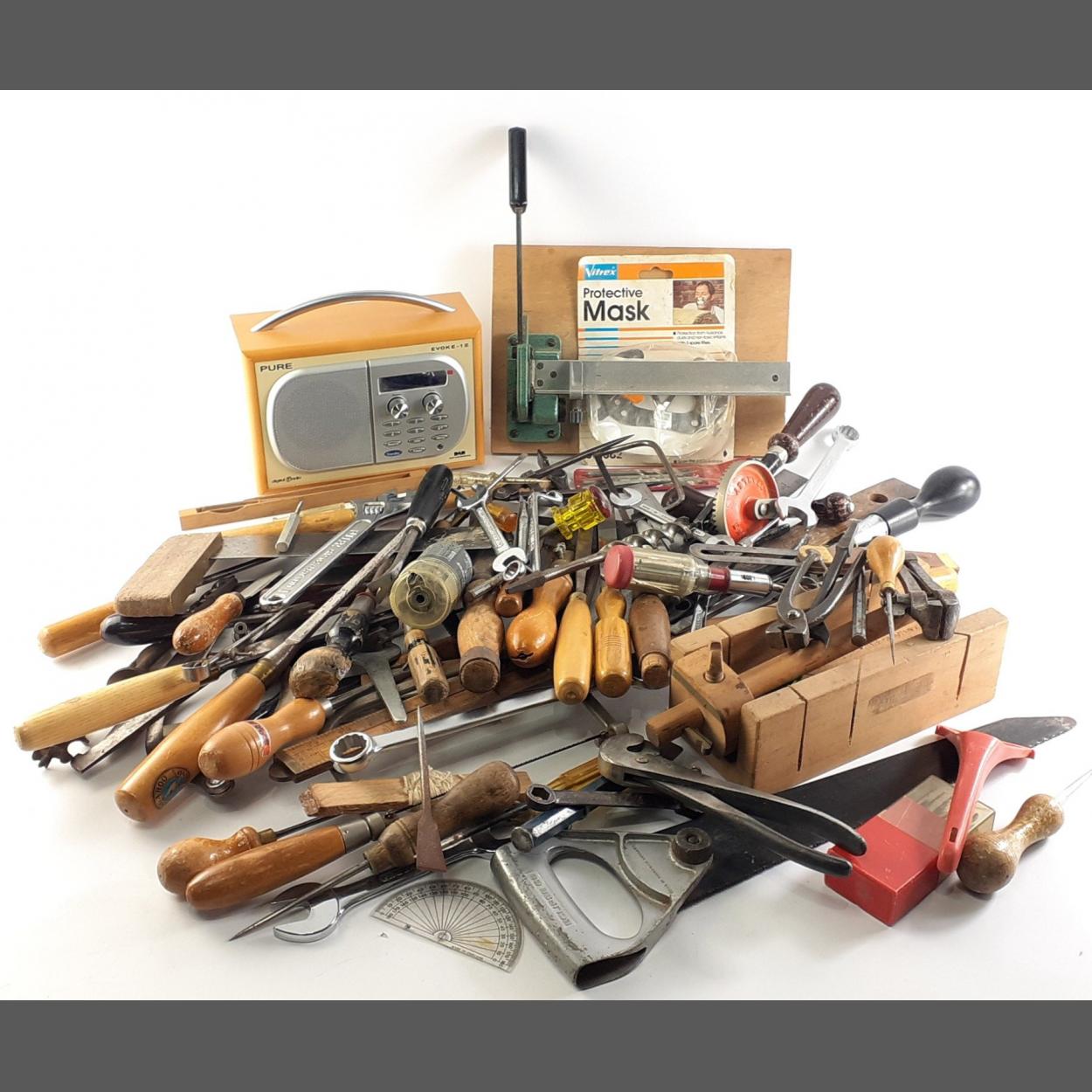 A great workshop clear out lot to include lots of hand tools and a EVOKE DAB Digital radio.