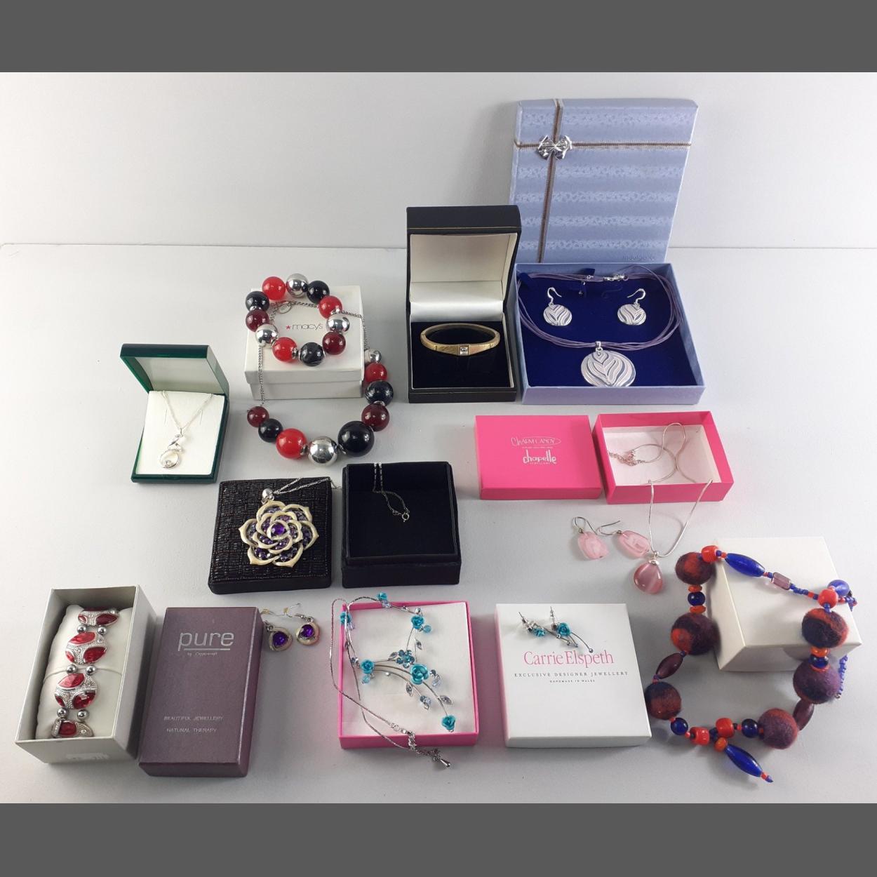 Good lot of modern jewellery, all boxed. Bangles, necklaces, pendants etc. Includes one 925 stamped chain and pendant