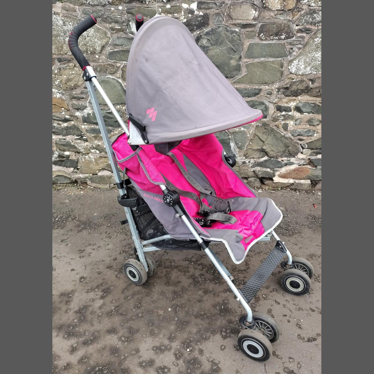 MACLAREN QUEST child stroller pushchair in excellent clean useable condition. With rain hood, restraining straps and rear carry basket.