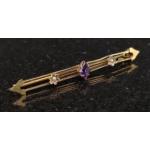 A 9ct bar brooch with central amethyst and seed pearls. Gross weight 1.45g approx