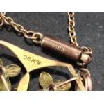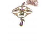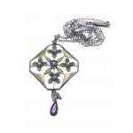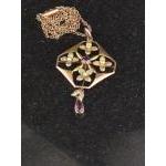 A rather lovely pendant stamped 9c, set with 4 seed pearls and 2 purple stones, length 4cm approx, with a 40cm chain also stamped 9c. Gross weight 5.22g approx