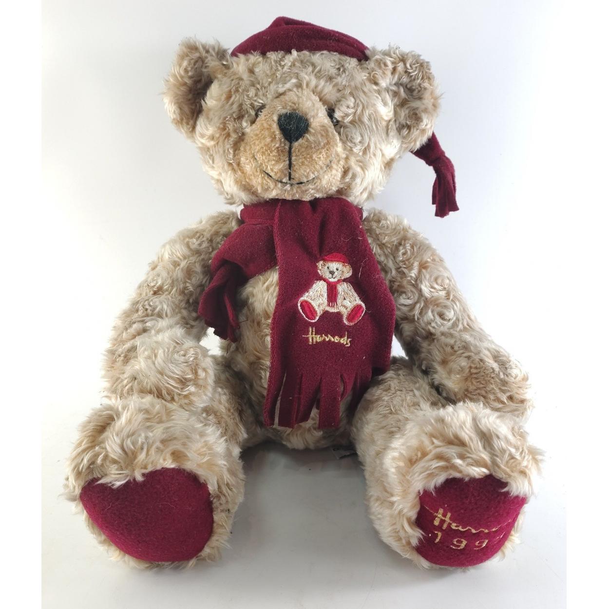 HARRODS Teddy Bear 1999 38cm approx bear with red scarf and cap in good clean condition.