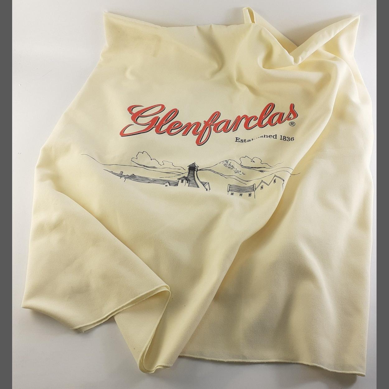 GLENFARCLAS A superb Glenfarclas themed display tablecloth with image of the distillery. 150cm x 150cm approx.
