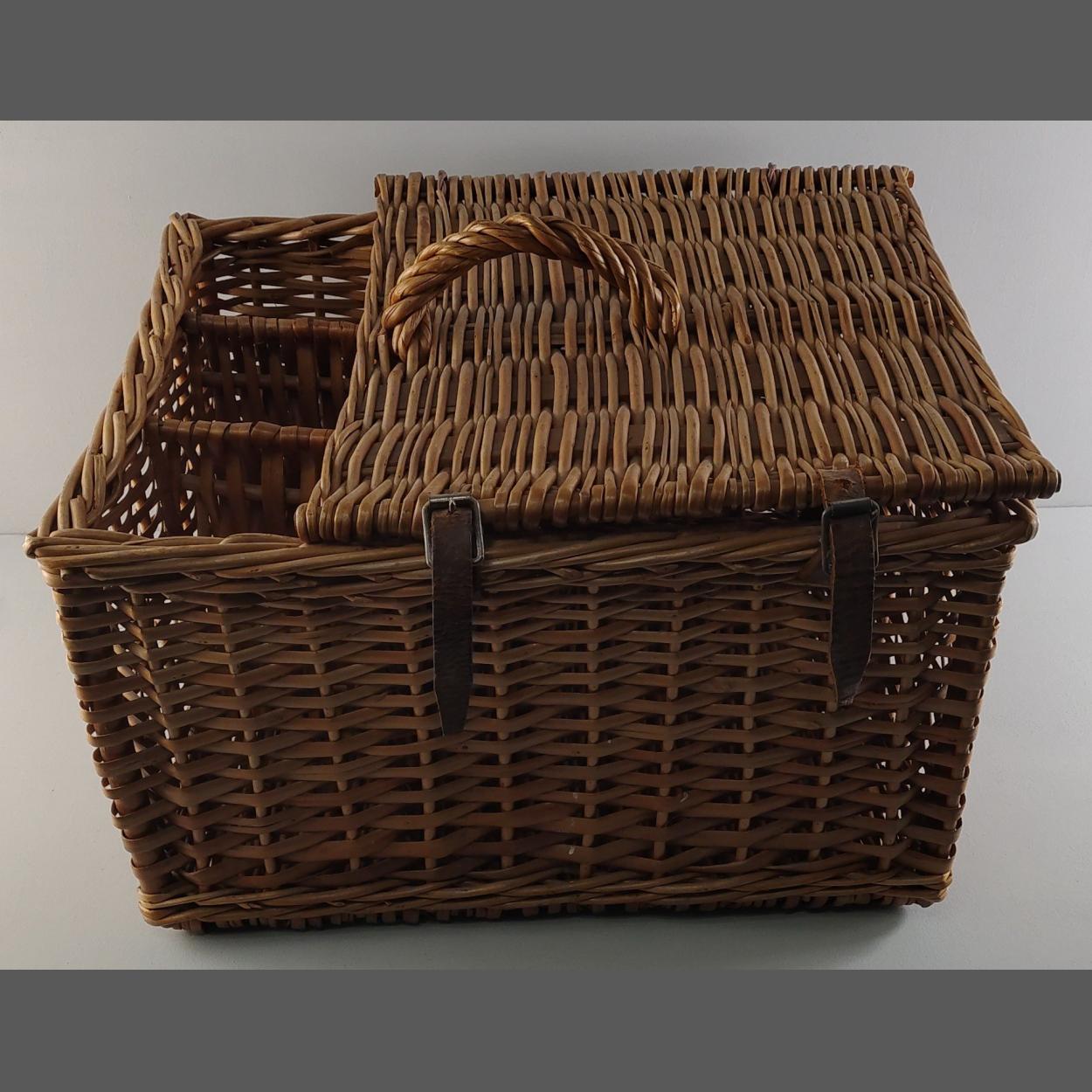 A nice clean wicker picnic basket with space for bottles to side. 28cm x 44cm x 34cm approx