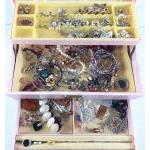 WOW! - A good cantilever jewellery box and contents to include a great selection of bling brooches, earrings, pendants etc.