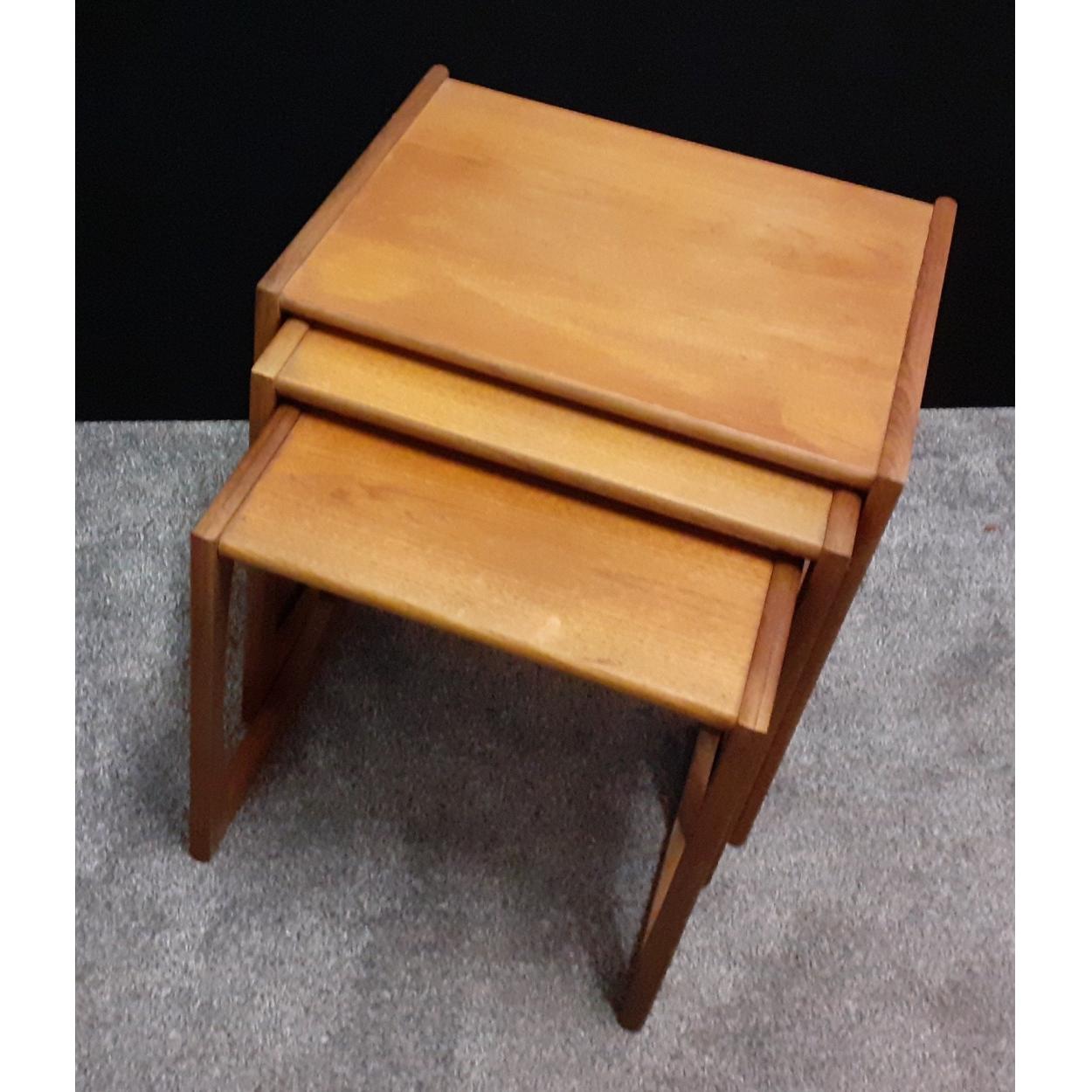 A nice set of 3 useable teak retro nested tables 50 x 53 x 40cm approx.