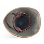 A vintage pith helmet with leather chin strap. WD Broad Arrow military marks in inside of band.