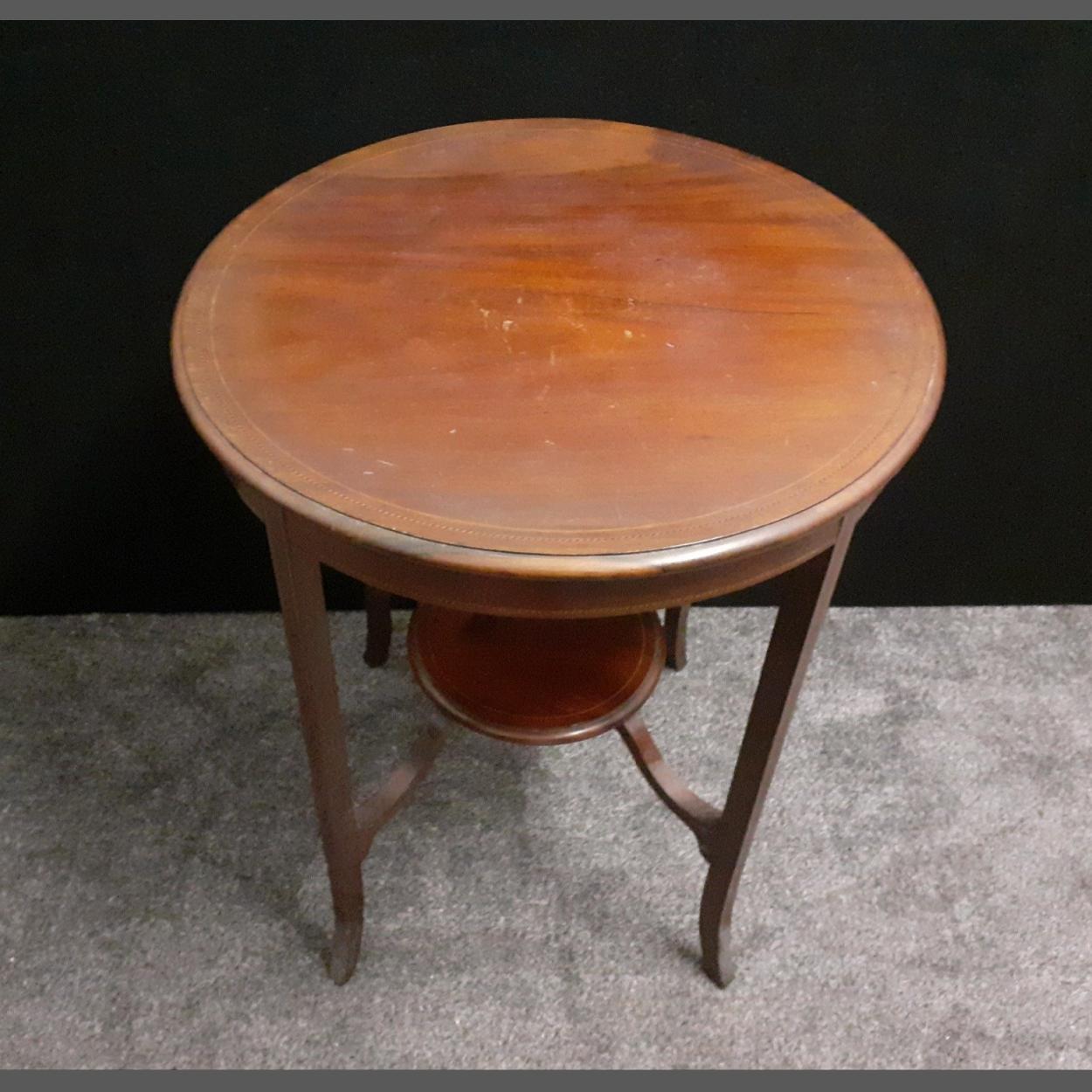A round occasional table with lower shelf. Diameter 38cm x height 69cm approx