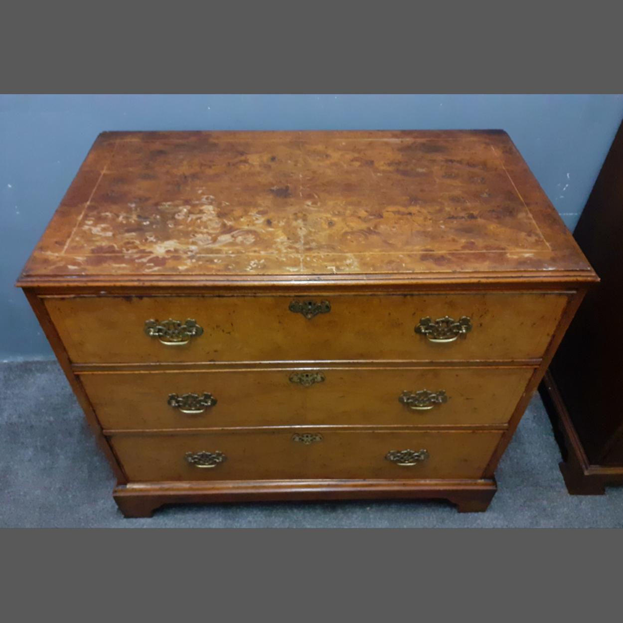 A VICTORIAN three drawer chest of drawers with brass handles. Needs some TLC. W97 D54 xH86cm approx