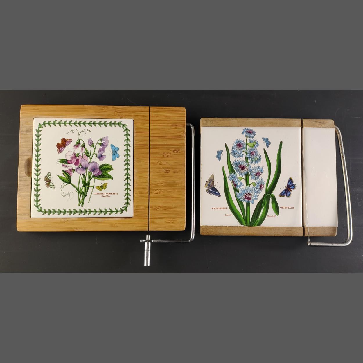 PORTMEIRION. Two lovely tiled cheese slicers - Hyacinth and Sweet Pea. In good order.