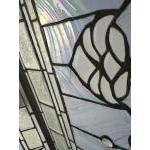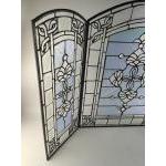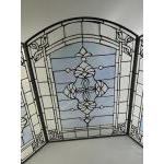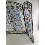 A modern glass and coloured leaded glass TIFFANY-effect folding fire screen in good clean condition NB minor crack noted. Displays beautifully. Stands 70cm tall approx