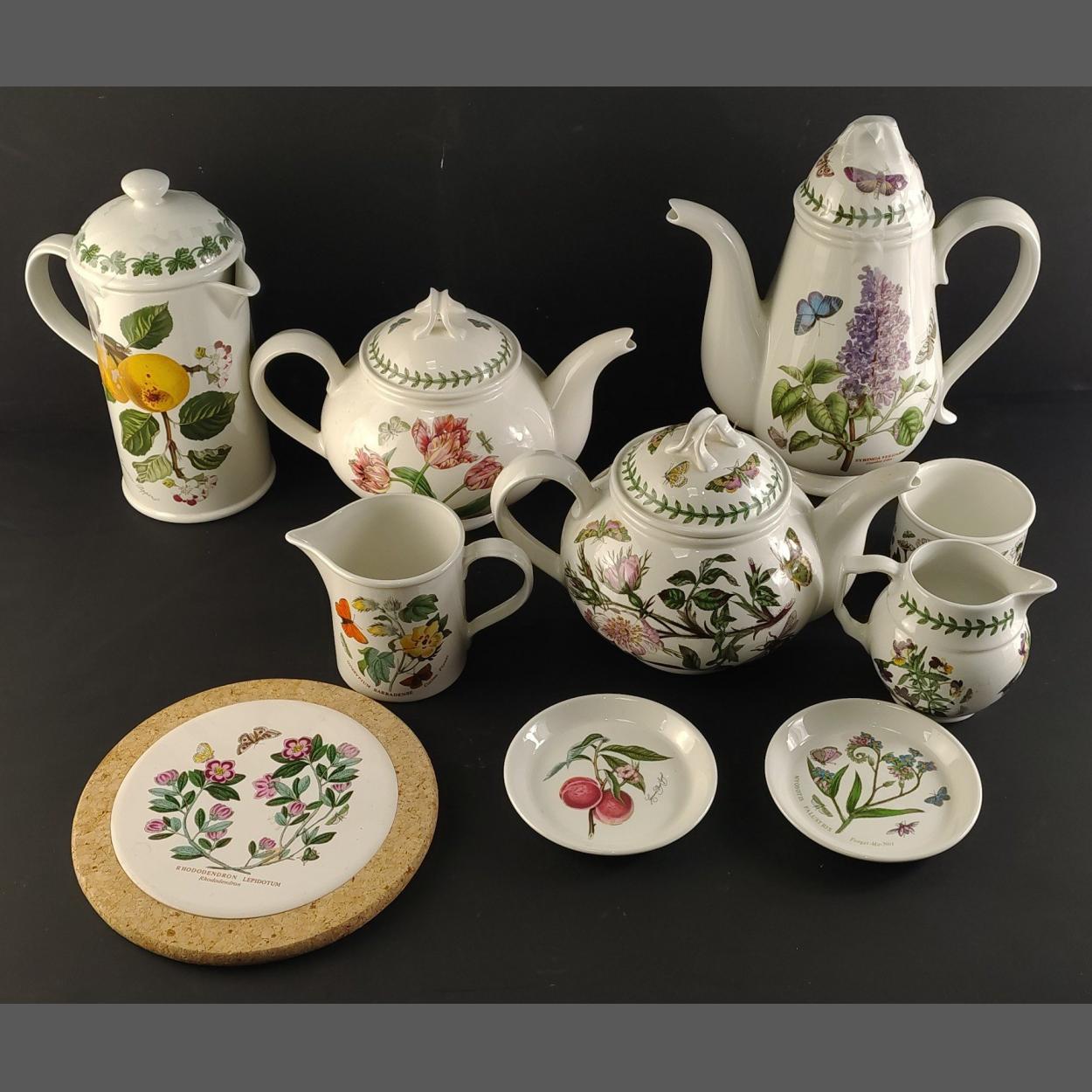 PORTMEIRION Tea and coffee service collection, comprising coffee pot, tea pots, hot water, milk and sugar with pot stand and two tea bag trays. A wonderful collection.