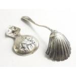 A quality ANTIQUE caddy spoon with intricate stamped decoration with BV stamp and one unmarked sugar spoon.