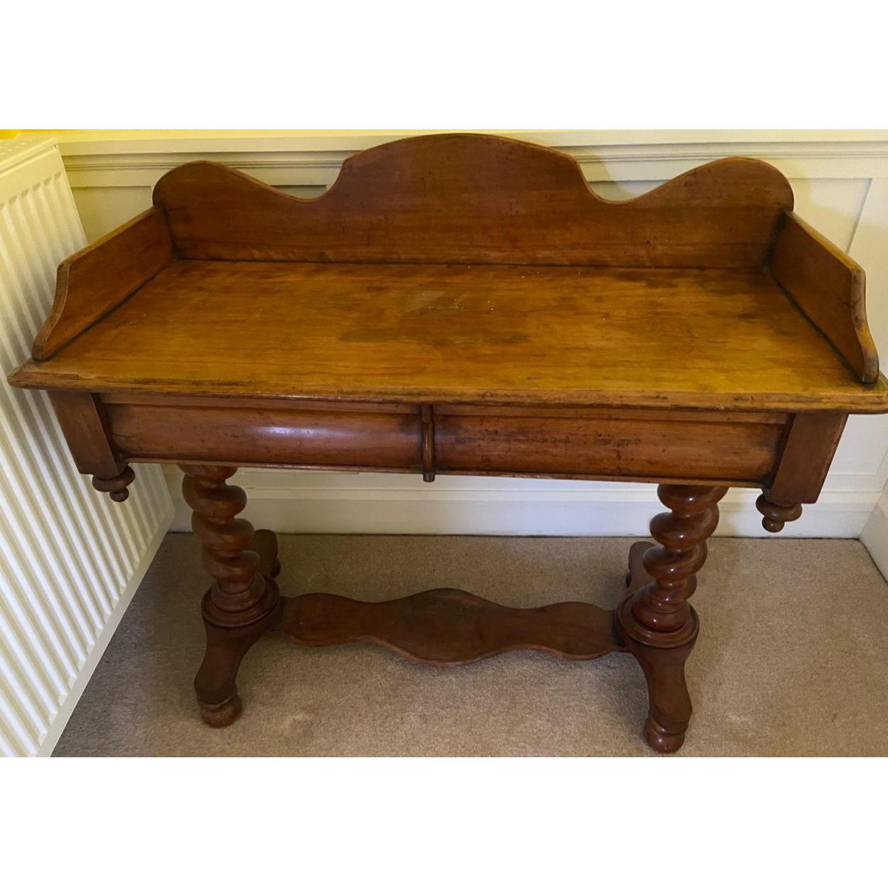 A VICTORIAN wash stand with stretchered barley-twist leg supports with a front drawer - width 105cm x depth 35cm x height 80cm approx