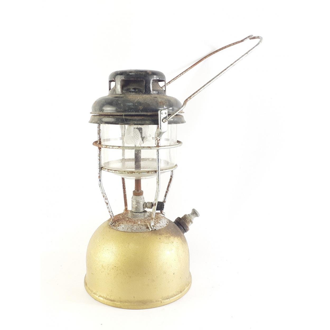 THE LIGHT OF MY LIFE! - A Tilly Lamp with intact glass, and black enamel hood. Stands 33cm