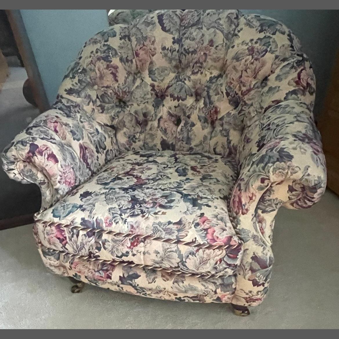 A REALLY COMFORTABLE button-backed low tub-chair on brass castors, purchased from JOHN LEWIS - as new condition!