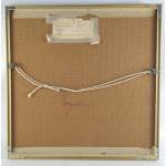 An acrylic on board work called 'Following Wing' indistinctly signed. Frame size 46 x 46cm approx