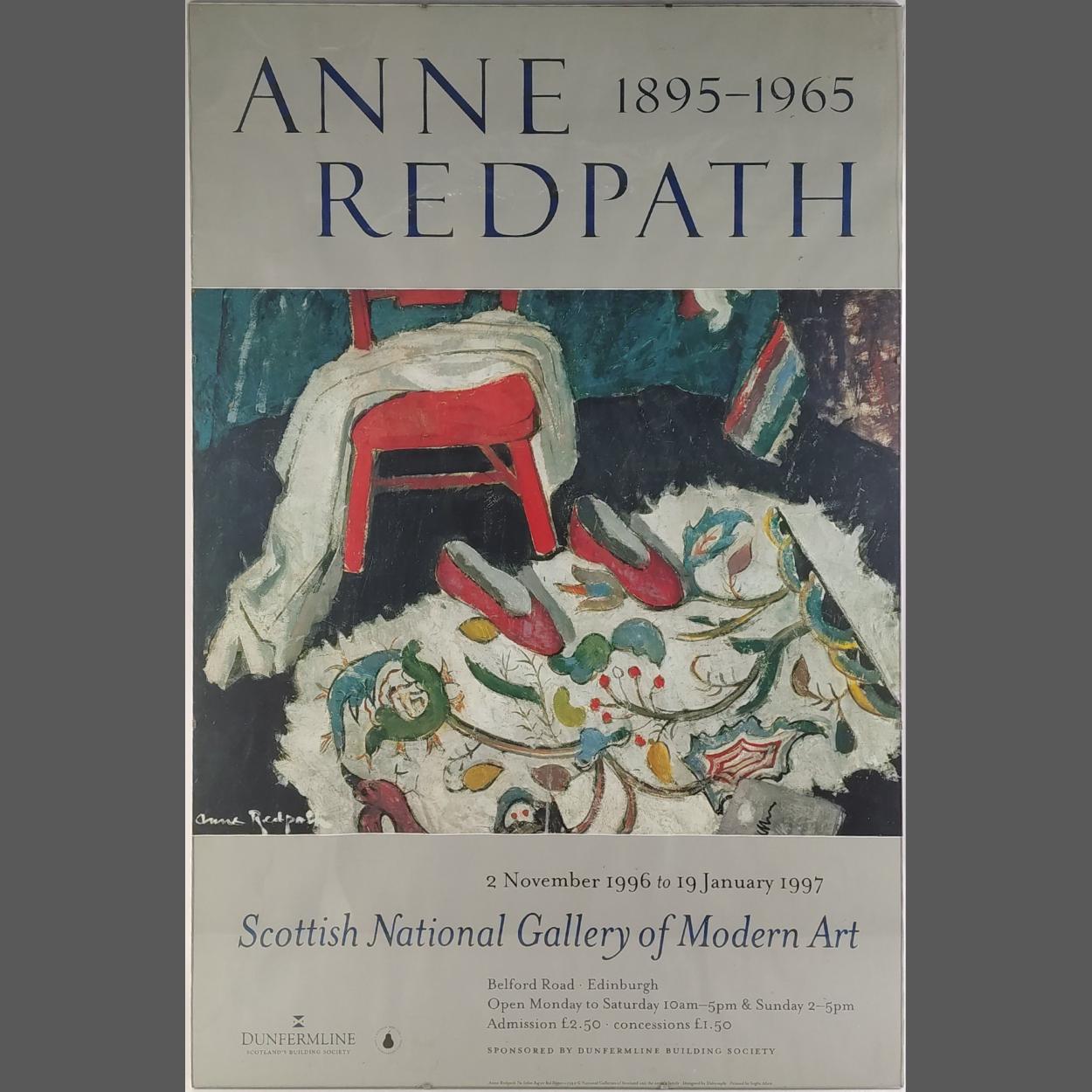 An ANNE REDPATH exhibition poster from 1996 in a clip frame. Frame 87 x 50cm approx