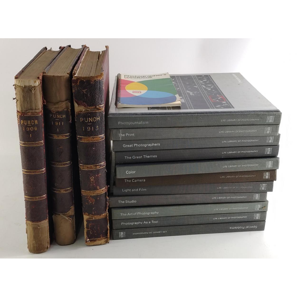 A collection of three bound PUNCH volumes and the TIMELIFE LIBRARY OF PHOTOGRAPHS.