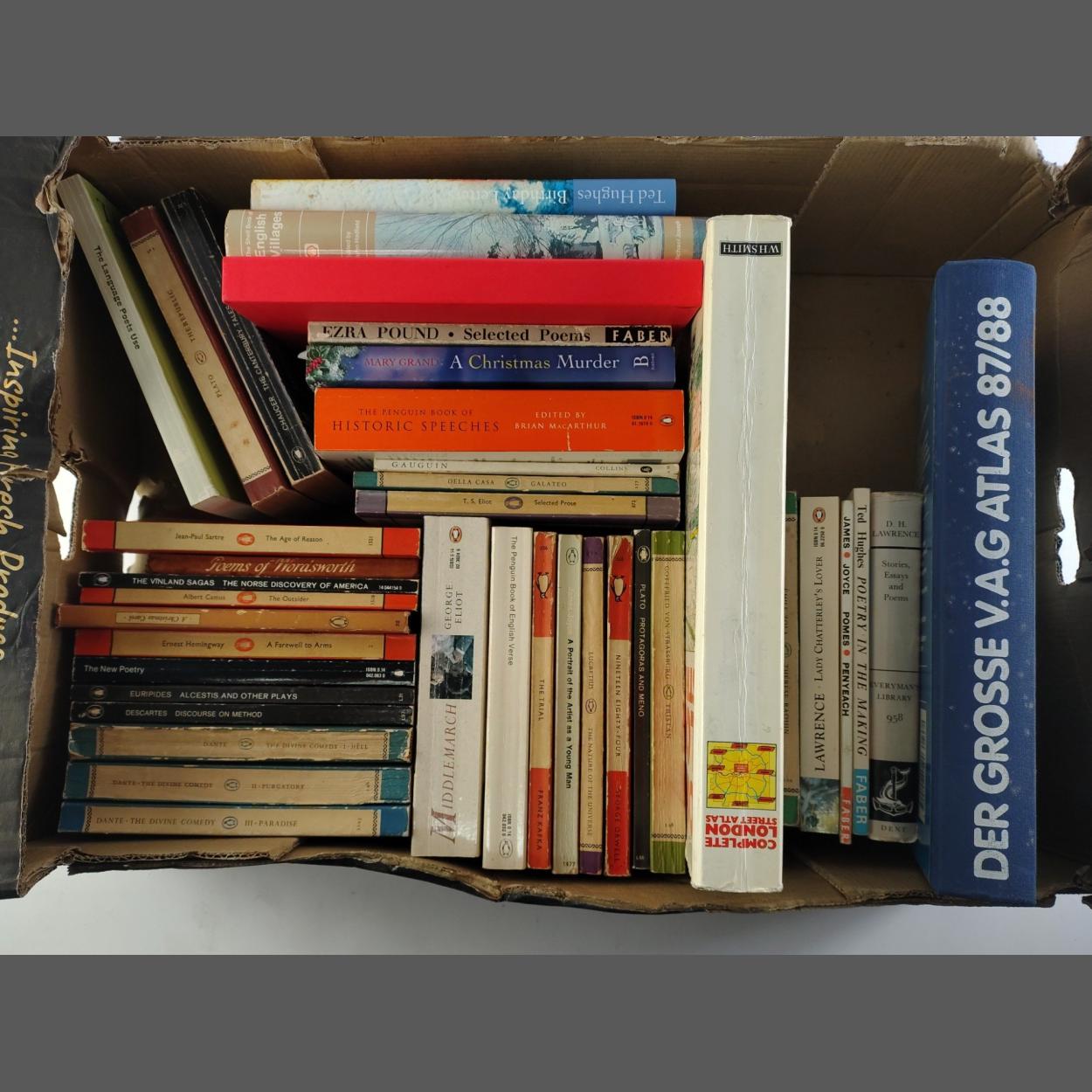 A box of paperbacks to include classics - Ezra Pound, Plato, DH Lawrence etc