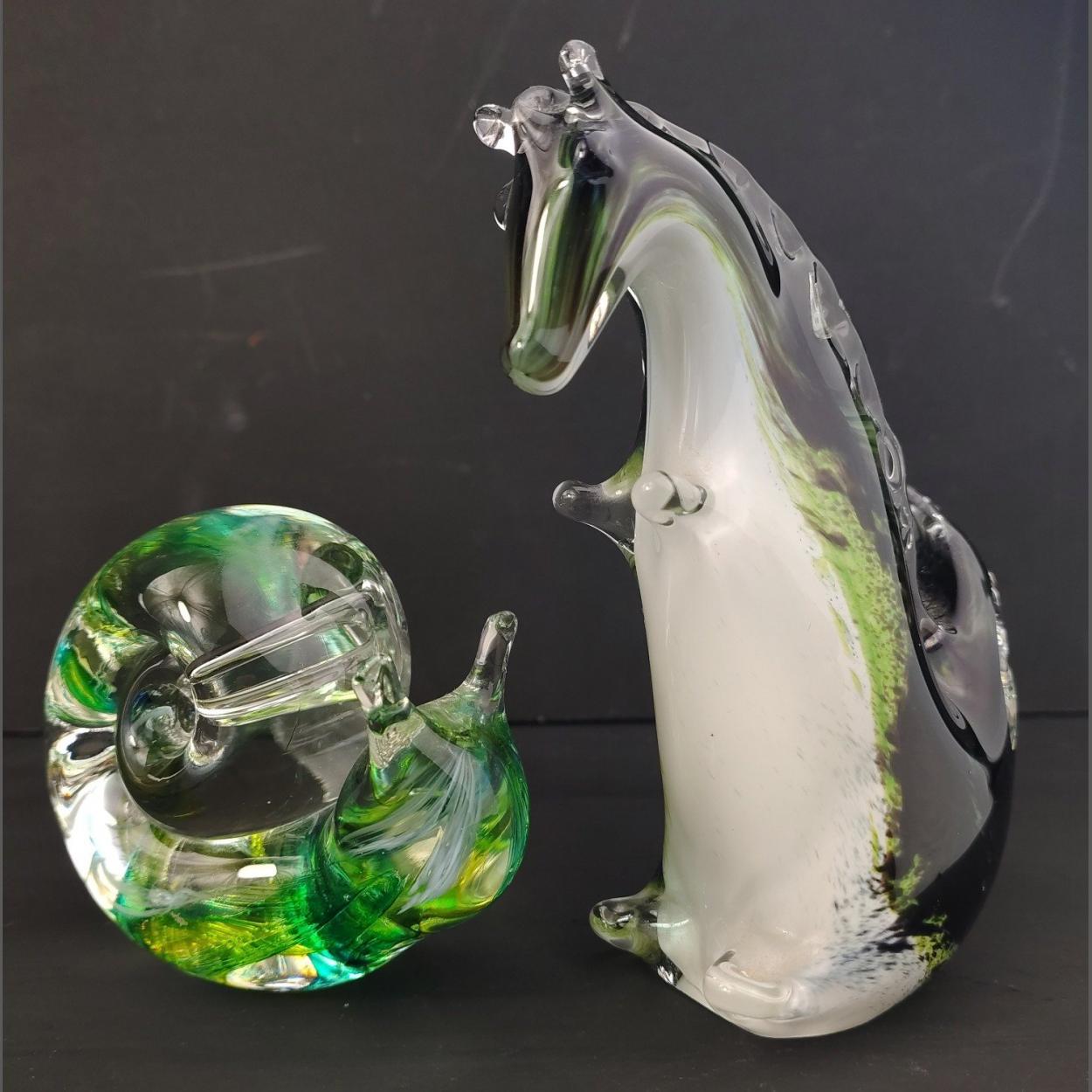 Two SELKIRK GLASS animals. The larger stands 12cm and the snail is 9cm approx. Both in good undamaged condition