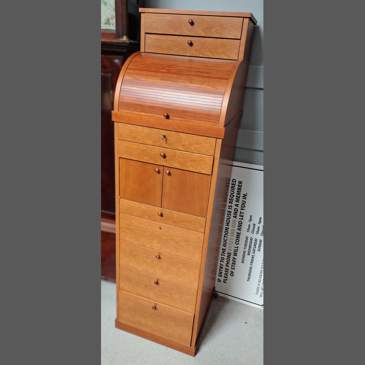 Unusual wooden slimline rolltop organiser unit - 5ft tall x 18" wide approx