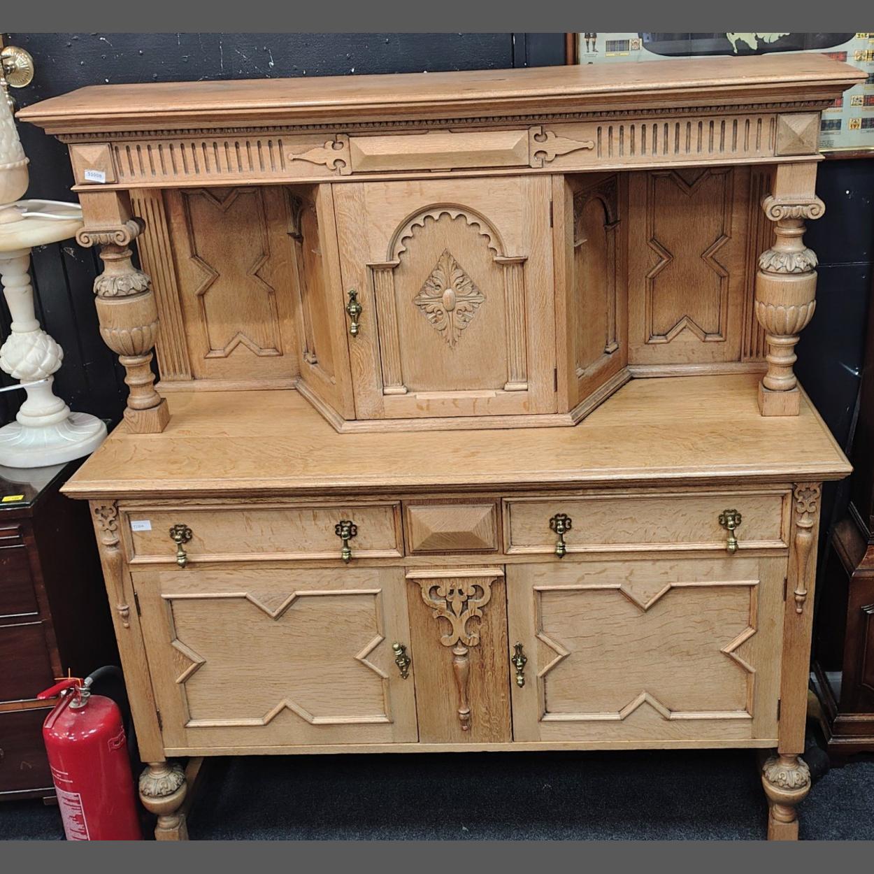 STUNNING VICTORIAN Light wood 2 drawer over 2 cupboard hand carved sideboard - dimensions 150cm width x 165cm height x 55cm depth approx