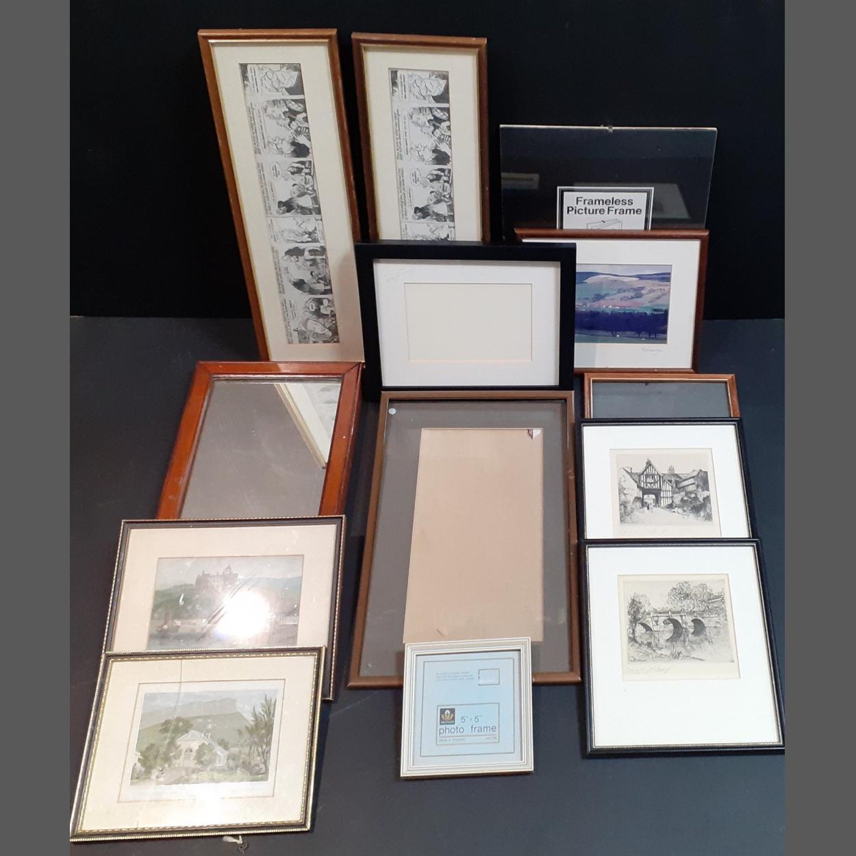 A good selection of framed prints, photographs and empty frames. A great selection of various sizes.