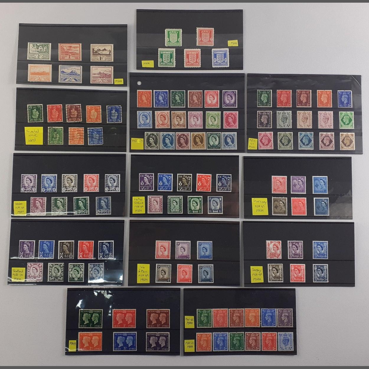 Twelve stock cards containing MNH sets to include regional issues and one card with a GEORGE VI inverted watermark used set with a cat value of £150.