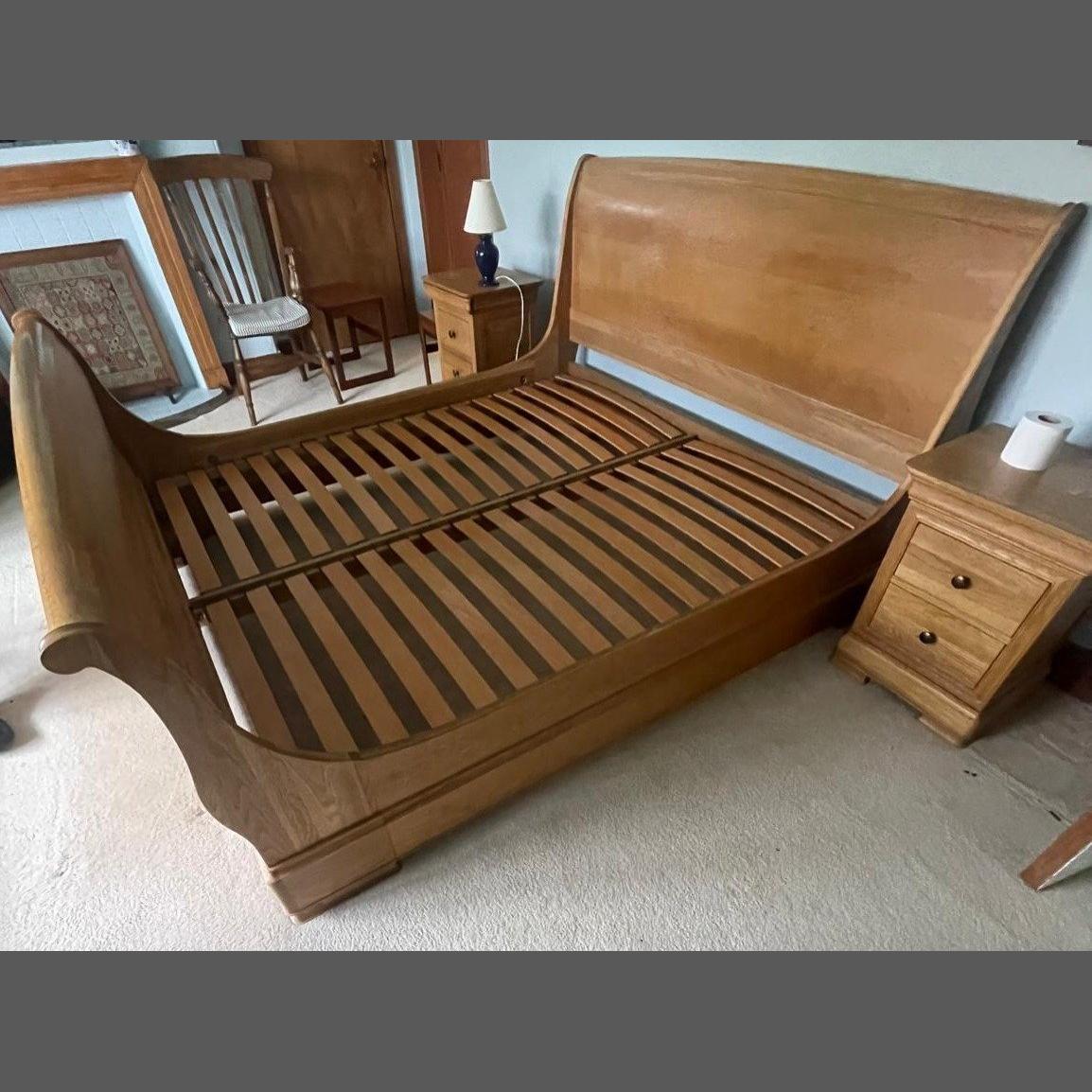 A WILLIS & GAMBIER pair of solid LIGHT OAK SUPER KINGSIZE ( 180cm width x 200cm length) sleigh bed with headboard - this piece of furniture is 'absolutely top quality!' - cost new over £450 - there is matching subsequent lots matching this lot - DON'T MISS OUT!
