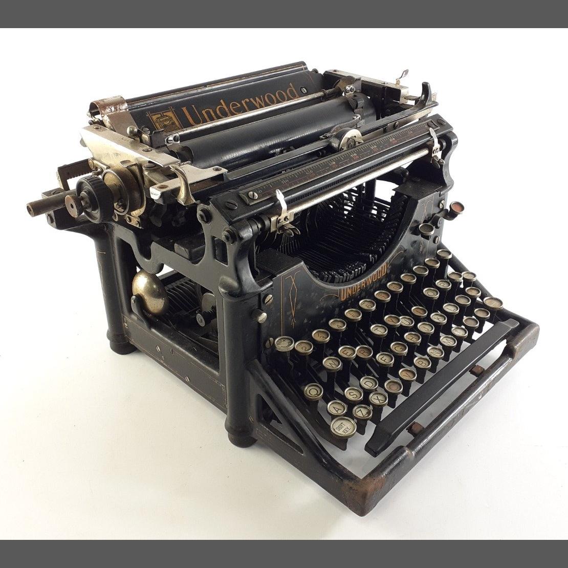 An antique UNDERWOOD standard typewriter with cover.