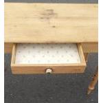 A VICTORIAN c1840's country pine table on turned legs with single central drawer. Measures W105 x D50 x H75cm approx