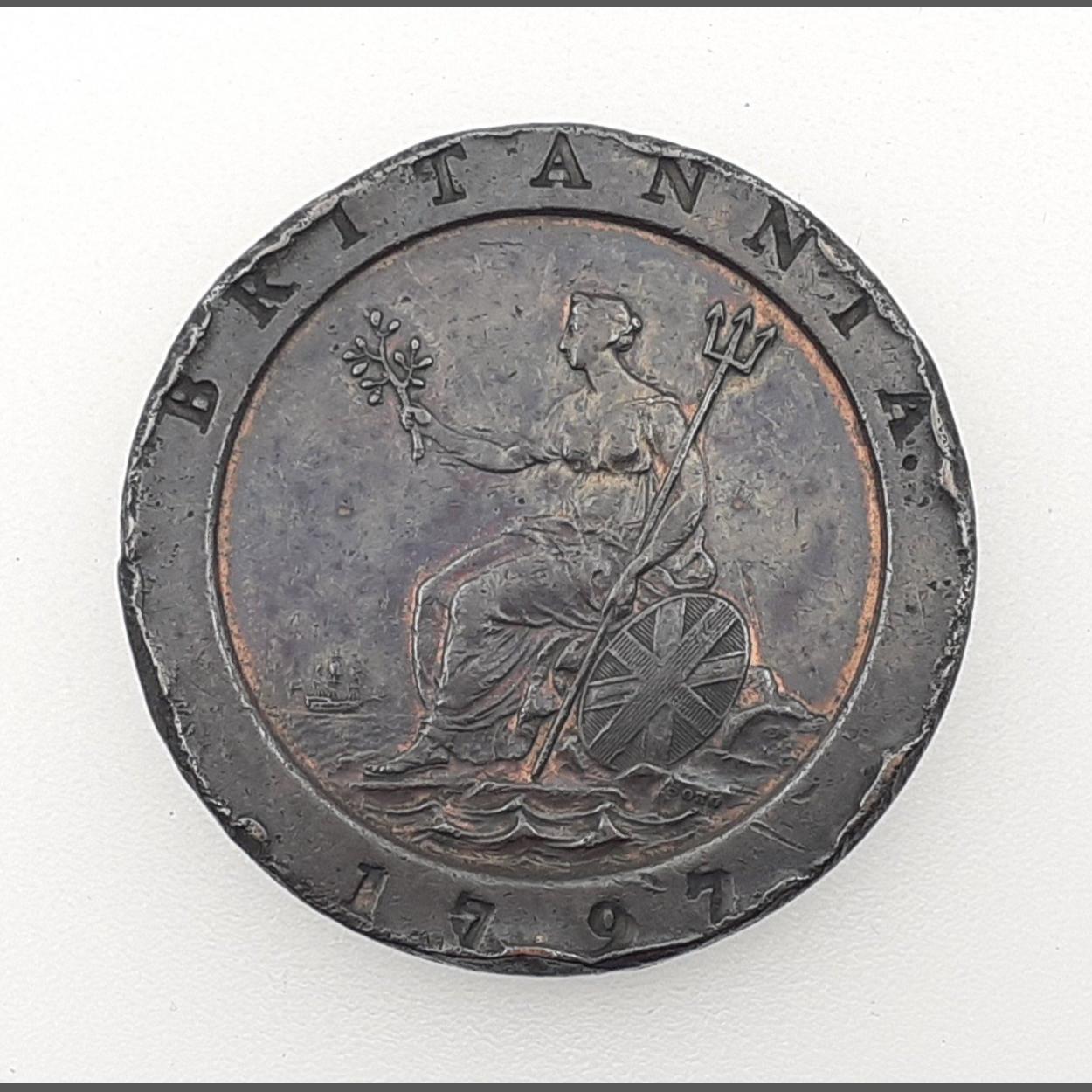 A 1797 GEORGE IIII Cartwheel Two pence in nice grade. A few edge knocks but much better than we usually see.