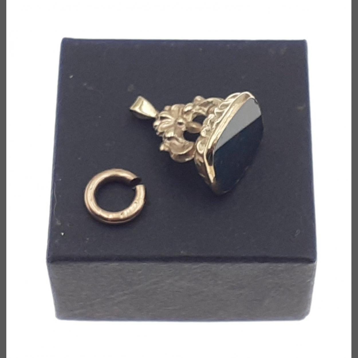 An attractive 375 marked blood stone fob, weight 2.4g approx