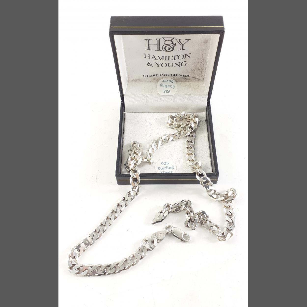 A 925 stamped silver flat link chain 60cm long, 41.5g approx