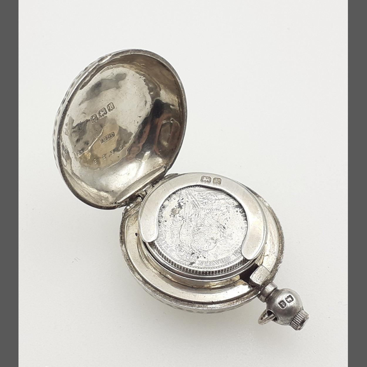 Pretty hallmarked sovereign case with a silver six pence. Diameter (exc. suspension ring) approx 30mm). Gross weight 20g approx