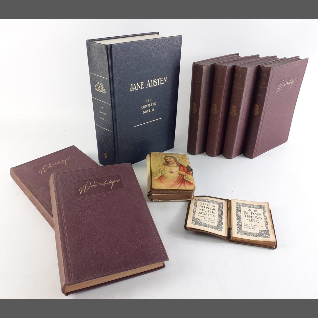 A small collection of classic books including JANE AUSTEN, and some SHAKESPEARE volumes.