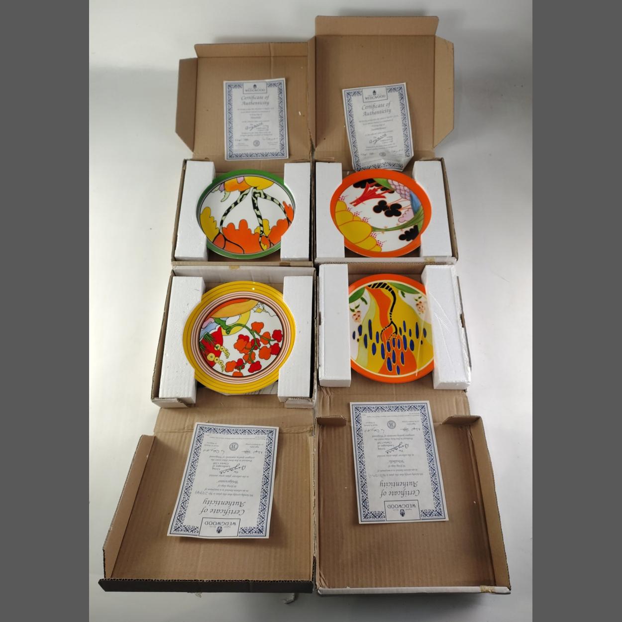 WEDGWOOD CLARICE CLIFF collectors plates. Four stunning highly coloured and decorative plates all boxed to include, HONOLULU, WINDBELLS, SUMMERHOUSE, BRIDGEWATER All in great well stored condition. Each plate 20cm approx.