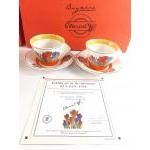WEDGWOOD BIZARRE by Clarice Cliff limited edition tea for two in the Crocus pattern to include a teapot, a sugar, a cream, a small cake plate and two cups with saucers (Qty), all boxed with paperwork. A stunningly beautiful set in well stored condition.