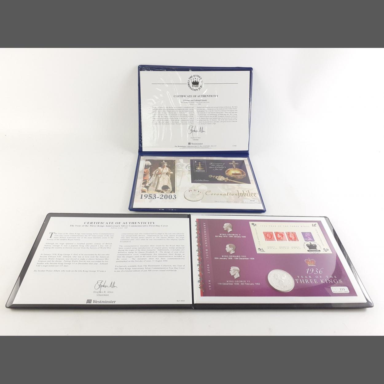 Two ROYAL MINT SILVER PROOF first day cover coins in folders with stamps on envelopes. Beautifully presented pieces.