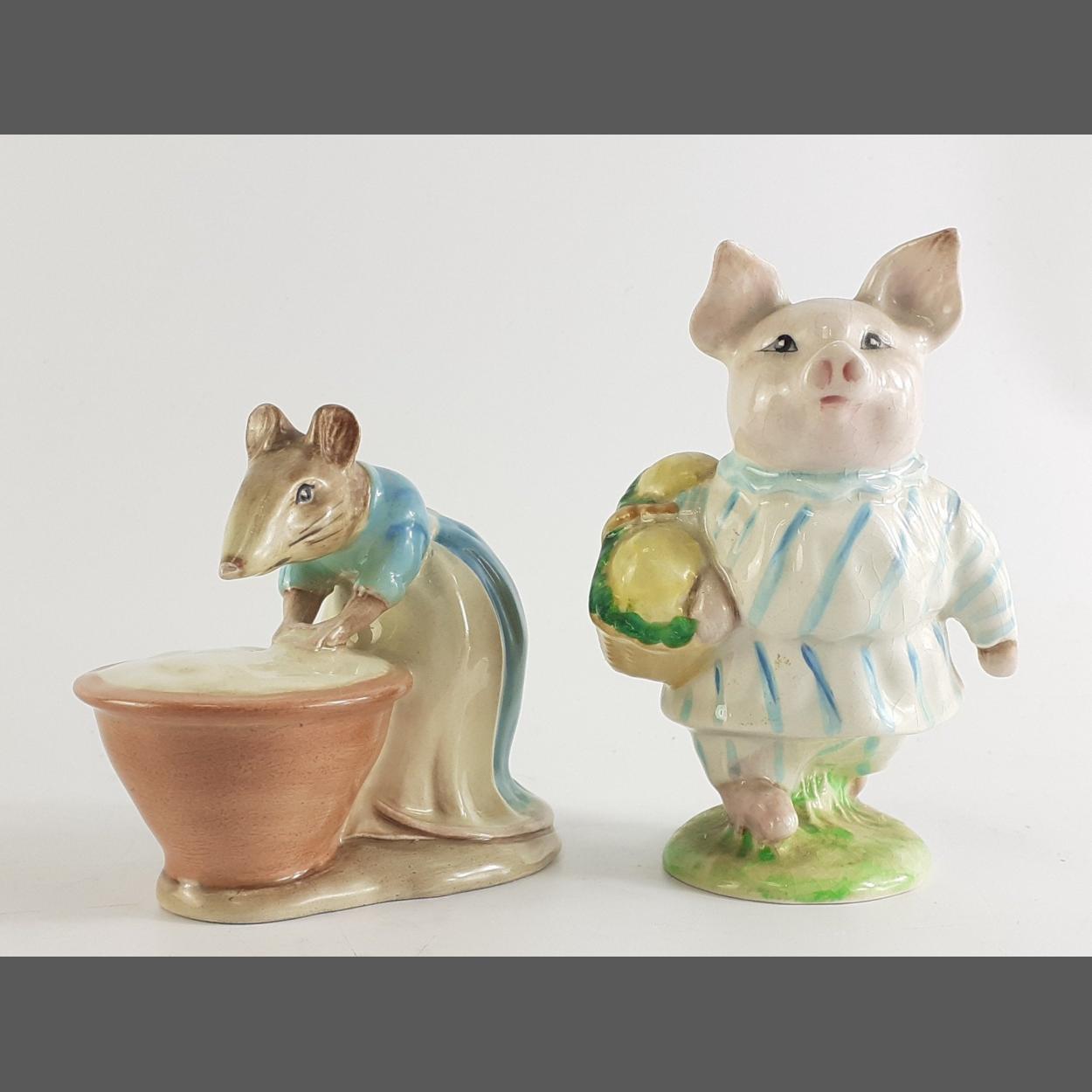 Two wonderful BESWICK Beatrix Potter ornamental animals. Little Pig Robinson and Anna Maria. Each 10cm tall approx.