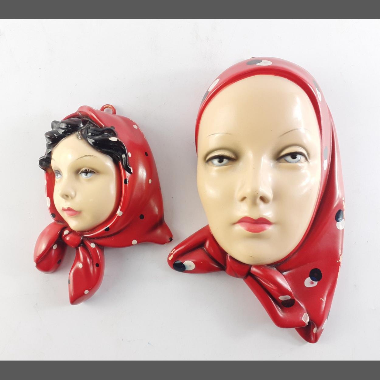 Two Italian made wall plaques of peasant girl face. Noted some light chips and paint loss on the larger piece. 25cm. approx