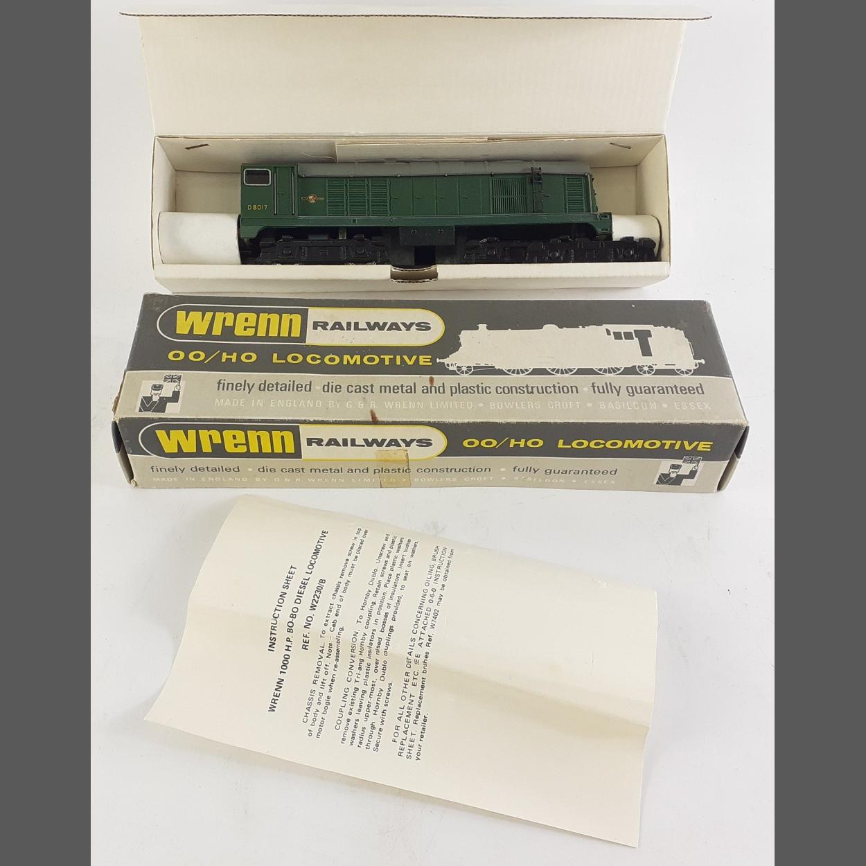 A WRENN OO/HO W2230 Bo-Bo Diesel electric Green BR model locomotive. Boxed in excellent condition.