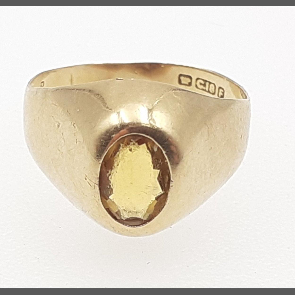 Stamped 18 small citrine style stone ring - ring size G (child-size?) gross weight 1.65g approx
