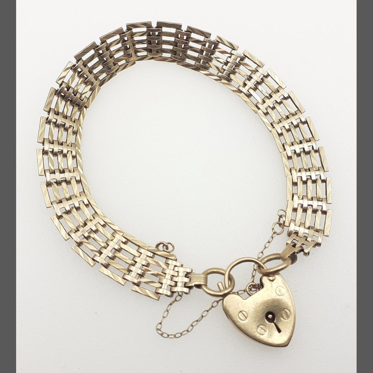 A 375 stamped chain-link bracelet with heart shaped lock - weight 14.35g approx