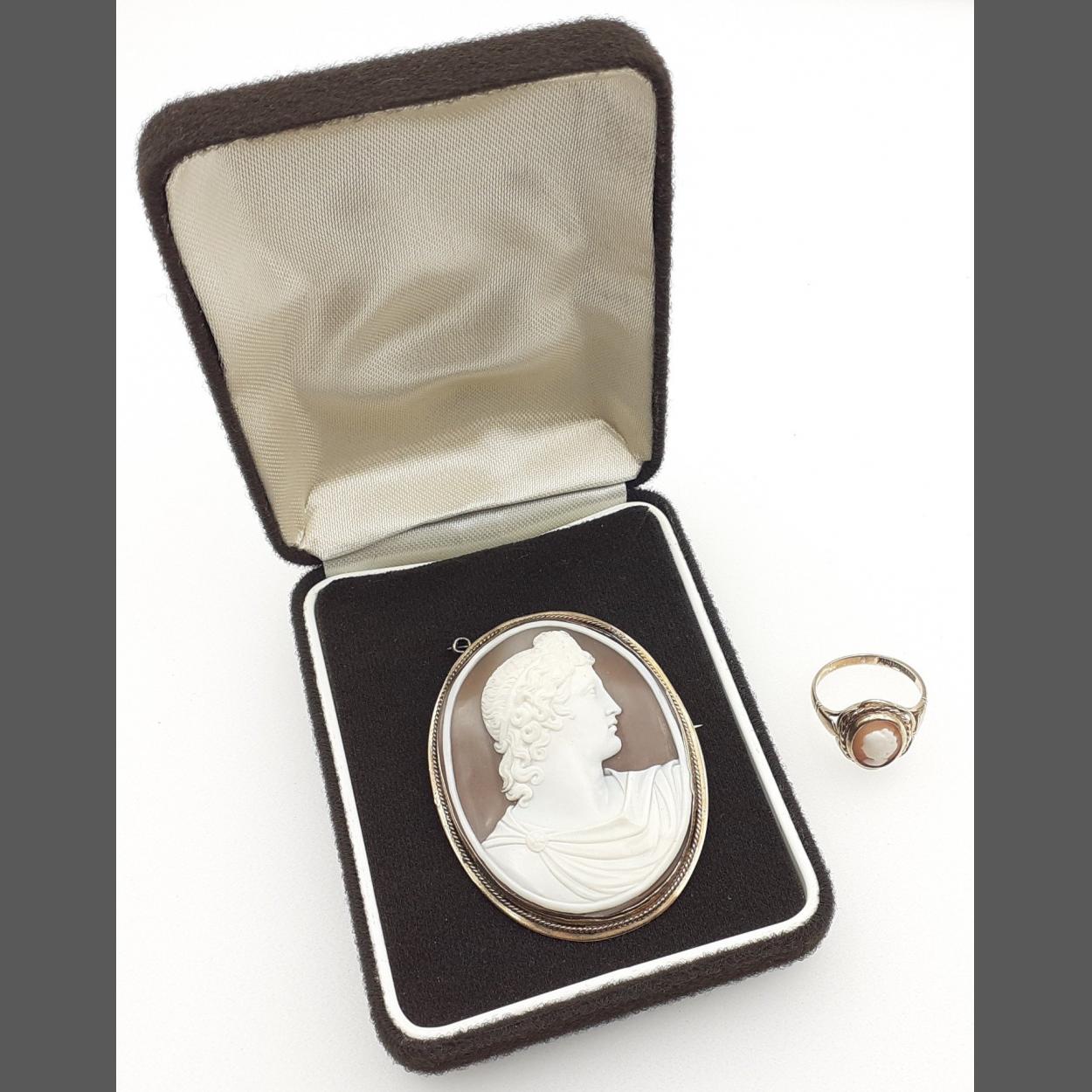 A 375 stamped CAMEO ring, size L, gross weight 2.65g approx with also a SUBSTANTIAL VICTORIAN unmarked!! yellow metal cameo brooch - dimensions 5x4cm, gross weight 11.89g approx