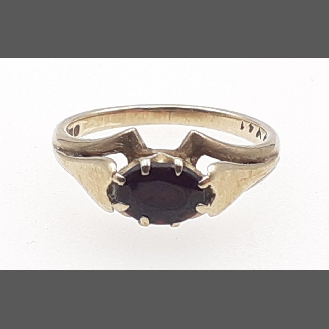 GORGEOUS GARNET! - An oval GARNET centred 375 stamped ring, size l, gross weight 2.62g approx
