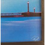 WHITBY HARBOUR BREAKWATER print signed P SMITH. A stylish warm but moody image, well framed. 64cm x 24cm approx.